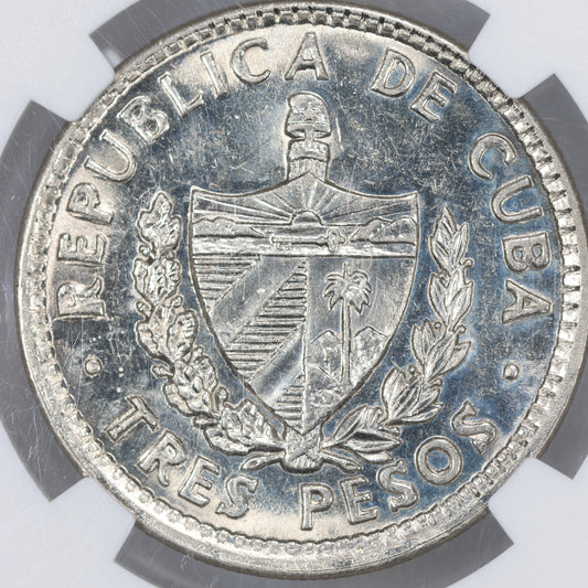2002 Cuba 3 Peso NGC MS63